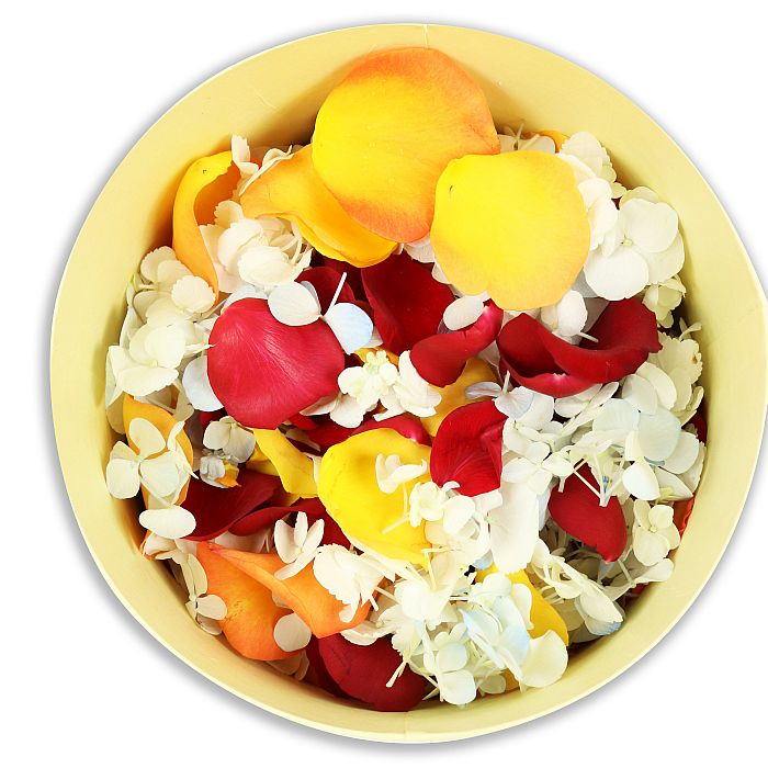 Add a touch of sophistication to your celebrations with our charming bouquet, filled with a vibrant mix of hand-selected blooms. The arrangement features a dynamic medley of Hydrangea petals, Rose petals, and Chrysanthemum petals, each contributing to a rich tapestry of color and texture.
